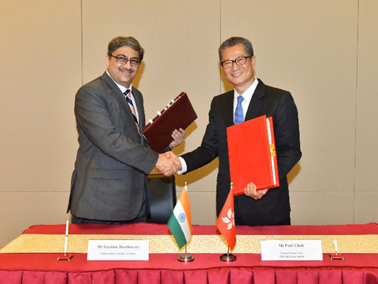 3月19日,香港財政司司長陳茂波代表香港特別行政區(qū)政府在香港與印度駐華大使Gautam Bambawale簽署全面性避免雙重課稅協(xié)定(全面性協(xié)定),標志著特區(qū)政府在擴闊香港稅收協(xié)定網(wǎng)絡方面繼續(xù)取得成果。