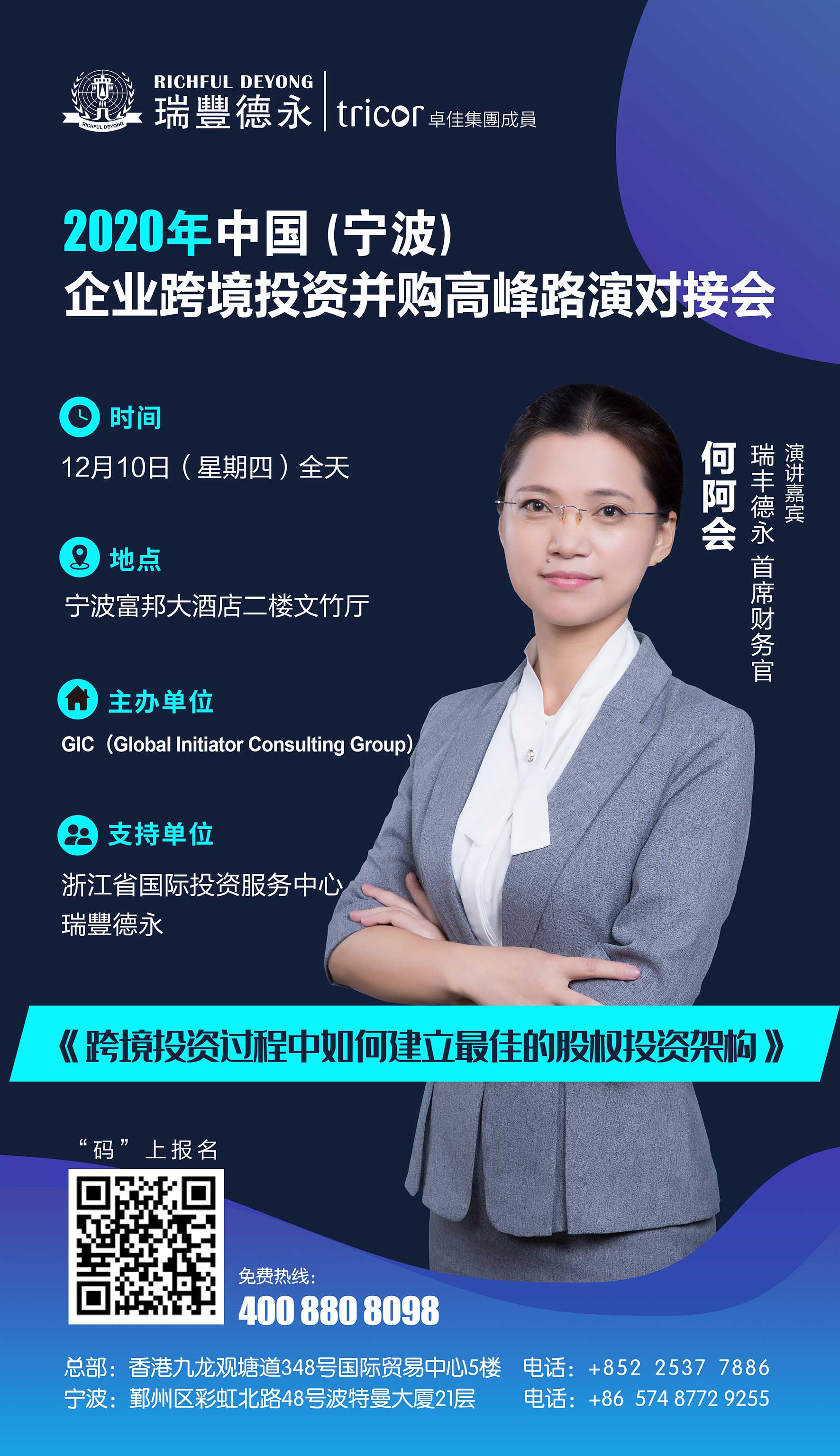 12月10日「2020年中國(寧波)企業(yè)跨境投資并購高峰路演對接會」將在寧波富邦大酒店舉辦。